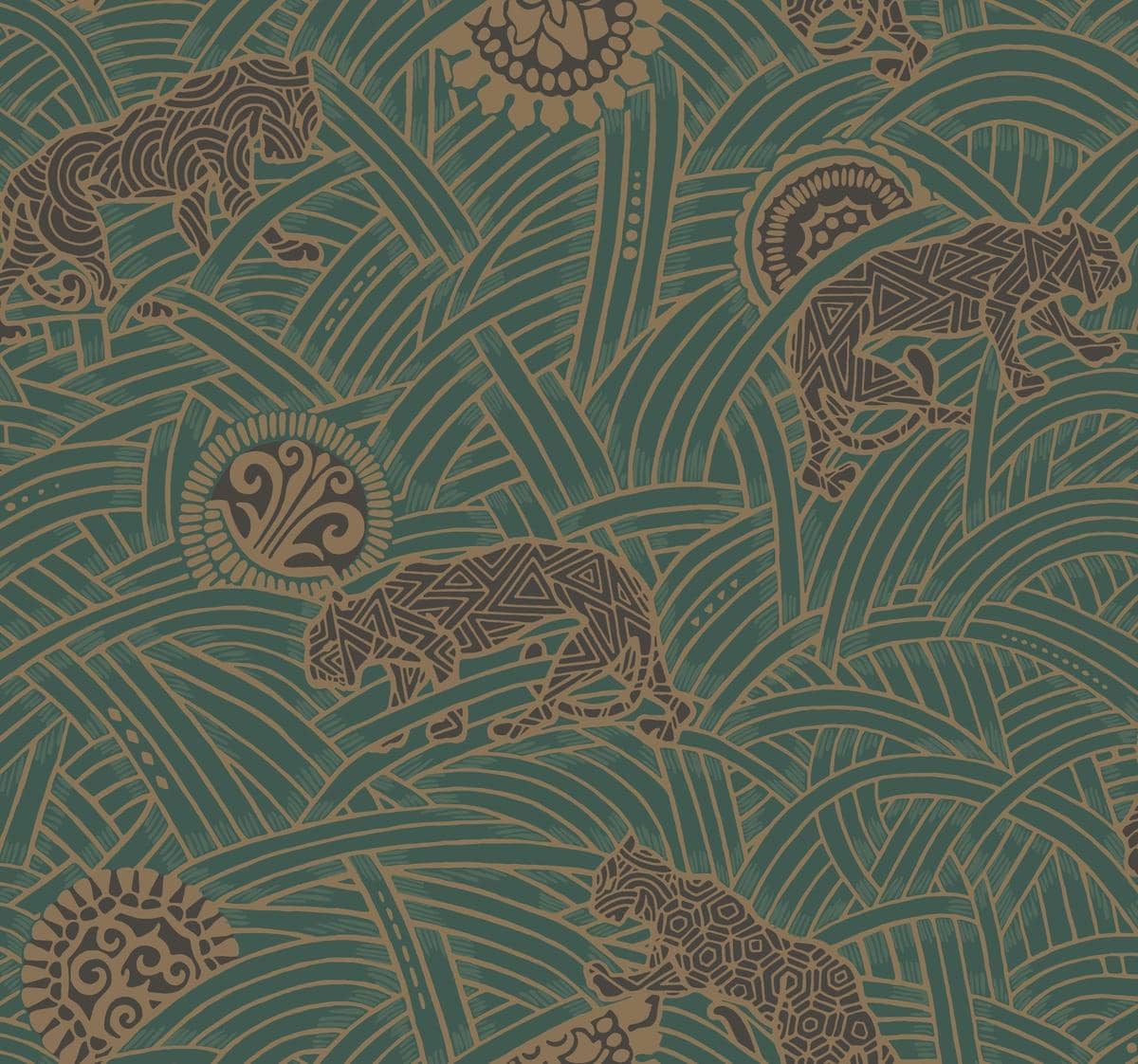 nazwa: Tapeta York Tea Garden AF6551 tygrysy złoty zielony