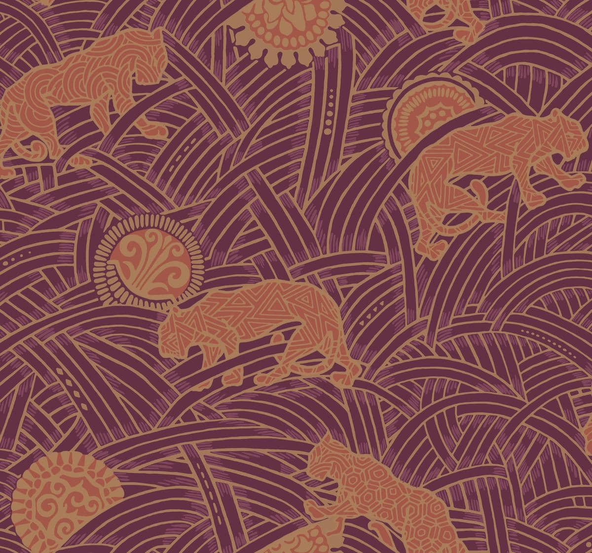 nazwa: Tapeta York Tea Garden AF6552 tygrysy złoty fioletowy