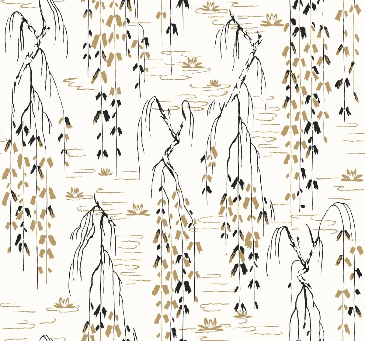 Pobierz teksturęOrginalna tapeta z kolekcji Tea Garden amerykańskiej marki Ronald Reading inspirowana jest sztuką dalekiego wschodu i przedstawia opadające gałązki wierzby. Złoto - czarny wzór sprawia wrażenie namalowanego cienkim pędzelkiem i ma bardzo japoński klimat. Pięknie ożywi salon lub sypialnię. Kolekcja Tea Garden to delikatne kolory i wzory nawiązujące do natury. Znajdziemy tu motywy zwierżęce, japońskie ogrody z charakterystycznymi altanami ale też proste, geometryczne wzory z lekką fakturą wykonane z naturalnych tworzyw. Wszystko pięknie do siebie pasuje dzięki subtelnej kresce i łagodnych barwach. Kolekcja Tea Garden to gratka dla fanów delikatności, marzycieli pragnących spokoju z odrobiną oryginalności. Okładziny z tego katalogu wprowadzą do wnętrz dobrą energię, nadając im wyraźnego choć nienachlanego charakteru.