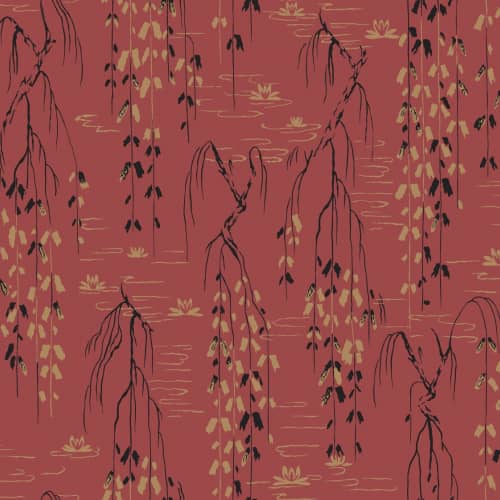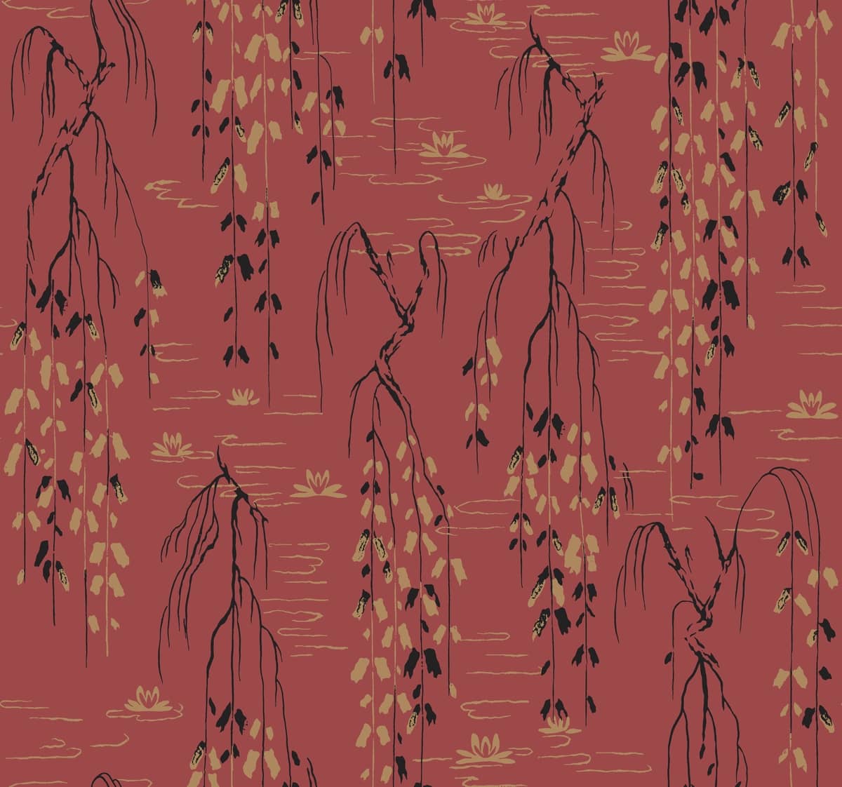 Pobierz teksturęOrginalna tapeta z kolekcji Tea Garden amerykańskiej marki Ronald Reading inspirowana jest sztuką dalekiego wschodu i przedstawia opadające gałązki wierzby. Złoto - czarny wzór na czerwonym tle sprawia wrażenie namalowanego cienkim pędzelkiem i ma bardzo japoński klimat. Pięknie ożywi salon. Kolekcja Tea Garden to delikatne kolory i wzory nawiązujące do natury. Znajdziemy tu motywy zwierżęce, japońskie ogrody z charakterystycznymi altanami ale też proste, geometryczne wzory z lekką fakturą wykonane z naturalnych tworzyw. Wszystko pięknie do siebie pasuje dzięki subtelnej kresce i łagodnych barwach. Kolekcja Tea Garden to gratka dla fanów delikatności, marzycieli pragnących spokoju z odrobiną oryginalności. Okładziny z tego katalogu wprowadzą do wnętrz dobrą energię, nadając im wyraźnego choć nienachlanego charakteru.
