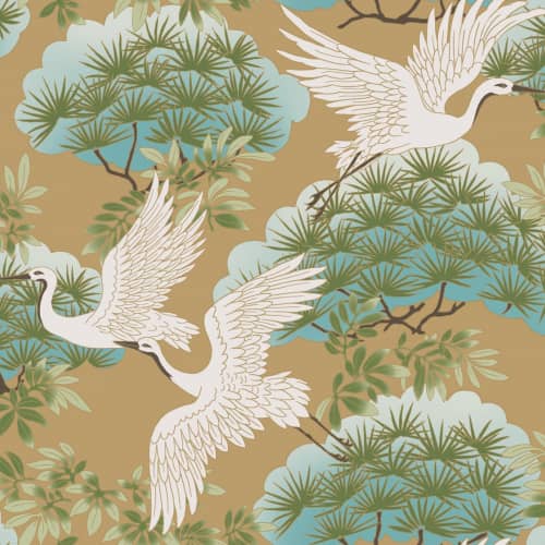 Pobierz teksturęNiezwykła tapeta z kolekcji Tea Garden amerykańskiej marki Ronald Reading inspirowana jest sztuką dalekiego wschodu i przedstawia żurawie w locie. Okładzina w zielono - złotych barwach wprowadza do wnętrza japoński klimat. Taki motyw pięknie ożywi salon lub sypianię. Kolekcja Tea Garden to delikatne kolory i wzory nawiązujące do natury. Znajdziemy tu motywy zwierżęce, japońskie ogrody z charakterystycznymi altanami ale też proste, geometryczne wzory z lekką fakturą wykonane z naturalnych tworzyw. Wszystko pięknie do siebie pasuje dzięki subtelnej kresce i łagodnych barwach. Kolekcja Tea Garden to gratka dla fanów delikatności, marzycieli pragnących spokoju z odrobiną oryginalności. Okładziny z tego katalogu wprowadzą do wnętrz dobrą energię, nadając im wyraźnego choć nienachlanego charakteru.