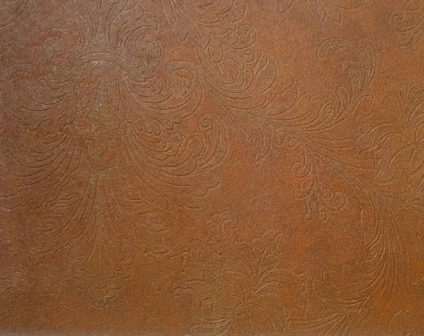 Prawdziwy unikat i wzornictwo na najwyższym poziomie okładzina ścienna 58722 pochodząca z kolekcji Horus niemieckiej marki Marburg. Tapeta wykonywana ręcznie na specjalne zamówienie klienta. Gruba wytrzymała struktura nada niepowtarzalnego charakteru przestrzeniom, będzie prawdziwą ozdobą. Szorstkaa struktura rdzy z przecierkami i przebarwieniami, a na niej wytłoczony klasyczny ornament.To zaskakujące połaczenie daje niesamowite wrażenie. Intensywny rudy kolor doda wnetrzom ciepła. Tapeta daje wiele mozliwośći aranżacyjnych. Produkt prezentuje się bardzo szlachetnie, to propozycja dla odważnych, którzy cenią sobie niestandardowe rozwiązania.