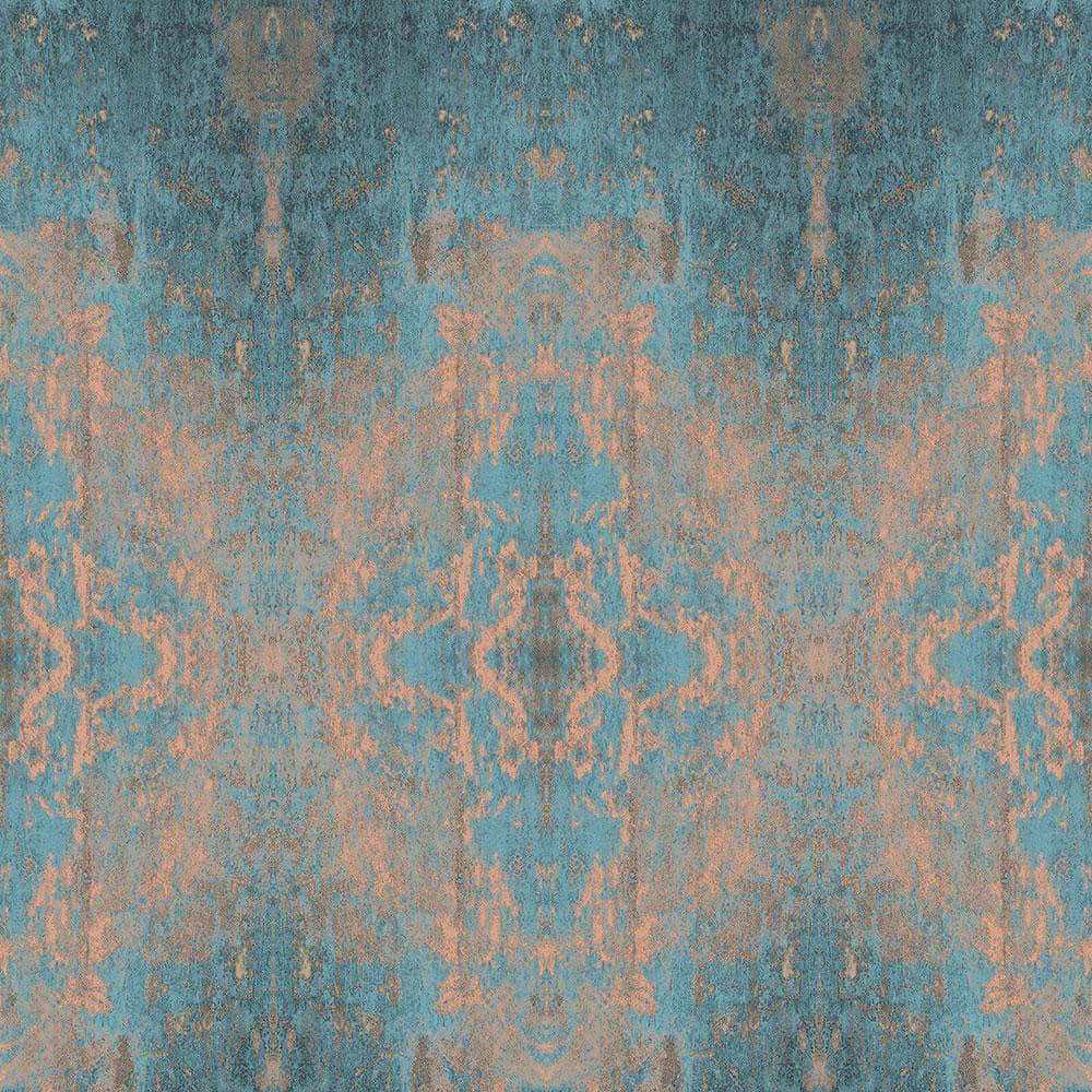 Pobierz teksturęWyjątkowe połączenie kolorów. Przenikające się odcienie morskich błękitów i turkusów uzupełnione miedzianymi akcentami. Tapeta przedstawia nowoczesny przecierany motyw. Duży wzór w interesujący sposób wypełni ścianę dodając wnętrzu elegancji i klasy. Tapeta ma połyskujące wykończenie, jej fragmenty posiają miedziane odbijające światło elementy. Tego typu zabieg da niesamowite, plastyczne wrażenie na ścianie. Powierzchnia będzie się pięknie prezentowała zarówno przy oświetleniu dziennym jak i wieczorem podświetlona punktowym strumieniem światła.