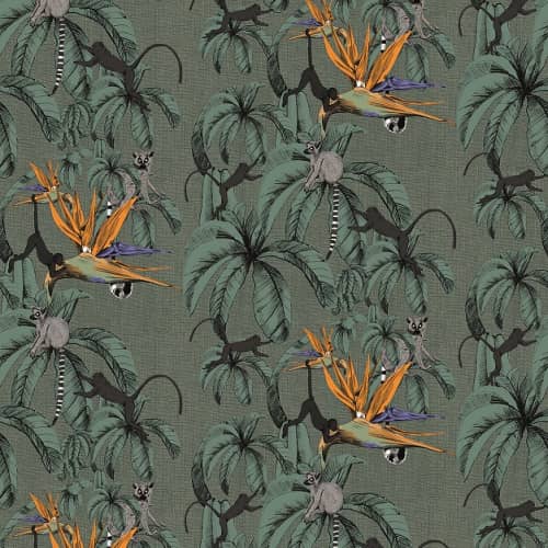 wzór: Mural Marburg Smart Art 46810 palmy lemury zielony pomarańczowy