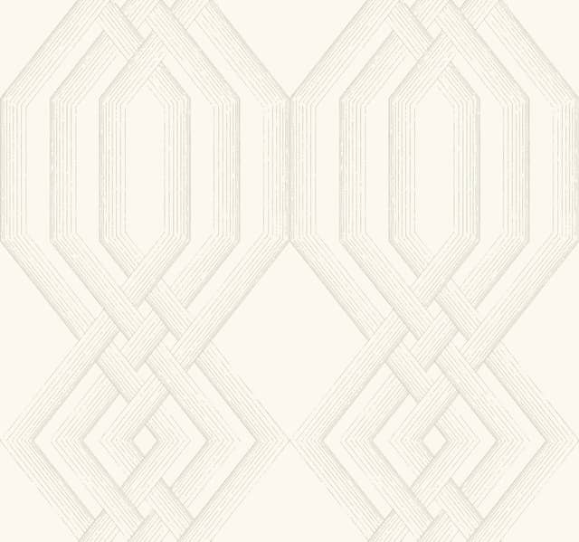 Nowoczesny wzór tapety przedstawiający geometryczny pleciony moduł pokazany w rysunkowym charatkerze. Interesująca propozycja amerykańskiej marki York. Jasne biało kremowe tło na którym rysuje się szary wzór. Motyw w ciekawy sposób wypełni całą powierzchnię ściany dodając przestrzeni nietuzinkowego charakteru. Idealnie dopełni nowoczesne aranżącje.
