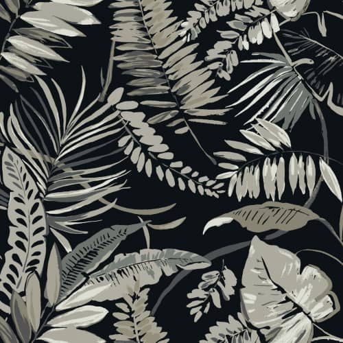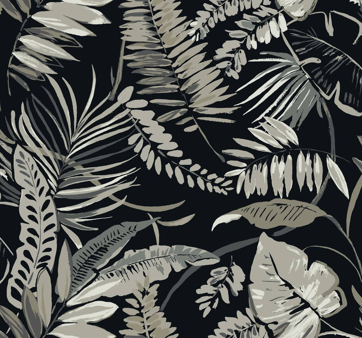 Tapeta amerykańskiej marki York przedstawia tropikalny motyw liści w monochromatycznych barwach odcieni szarości na czarnym tle. Wzór będzie modnym akcentem i pięknie wyeksponuje ścianę. Nada przestrzeni interesującego wyrazu, zainspiruje domowników. Motyw idealnie sprawdzi się w salonie czy sypialni.