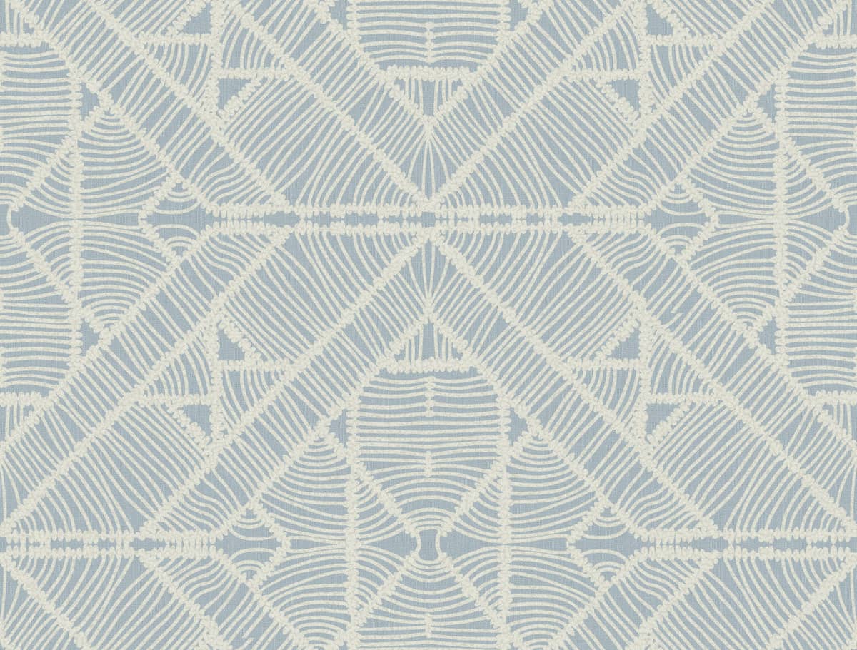 Ponadczasowy wzór przedstawiający zgeometryzowane kształty w jasnym odcieniu błękitu. Ta tapeta pozwoli stworzyć przytulną aranżację w mieszkaniu. Ciekawie skomponuje się z drewnem oraz innymi elementami we wnętrzu. Delikatny symetryczny wzór pozwoli usyskać stan harmonii i spokoju.