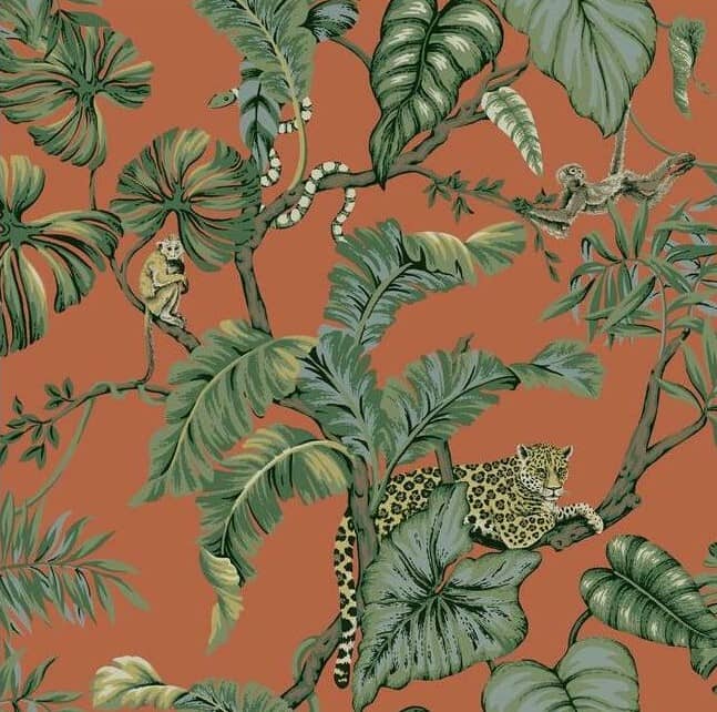 Pobierz teksturęTropikalna tapeta o wzorze liści i dzikich zwierząt amerykańskiej marki York Wallcoverings.