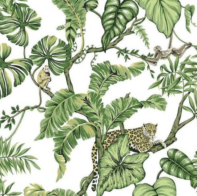 Pobierz teksturęTropikalna tapeta o wzorze liści i dzikich zwierząt amerykańskiej marki York Wallcoverings.