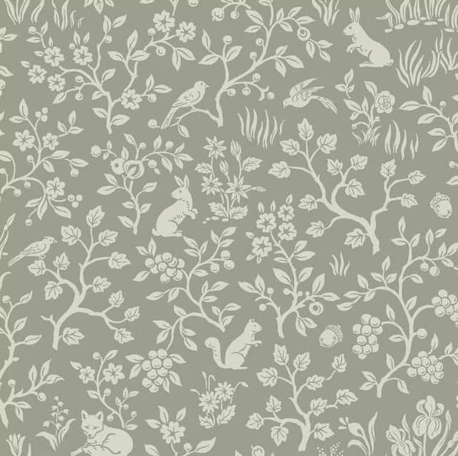 nazwa: Tapeta samoprzylepna York RIFLE PAPER CO. PSW1165RL króliczki / leśne zwierzątka / drzewa na szarym tle
