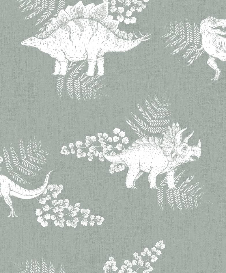 Wzór przedstawiający dinozaury będzie idealnym rozwiązaniem i pomysłem na ozdobienie ścian w pokoju chłopca, który interesuje się archeologią i historią. Dinozaury przedstawione są w naturalnych pozach z zachowaniem anatomicznych elementów. Pastelowy odcień zieleni będzie działał kojąco i uspokajająco na zmysły dziecka.