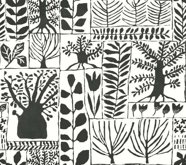 Pobierz teksturęNiecodzienny wzór narysowanych drzew swoim stylem naśladujący sztukę plemienną z najnowszej kolekcji Black & White Recource Library światowej sławy, amerykańskiego producenta tapet York Wallcoverings. Nieregularne kształty i linie przełamują gemoetryczną kompozycję o naturalnym, botanicznym charakterze. Ciekawy wzór idealnie sprawdzi się w salonie, kuchni lub sypialni, jako ściana dekoracyjna pasując do każdej przestrzeni.
