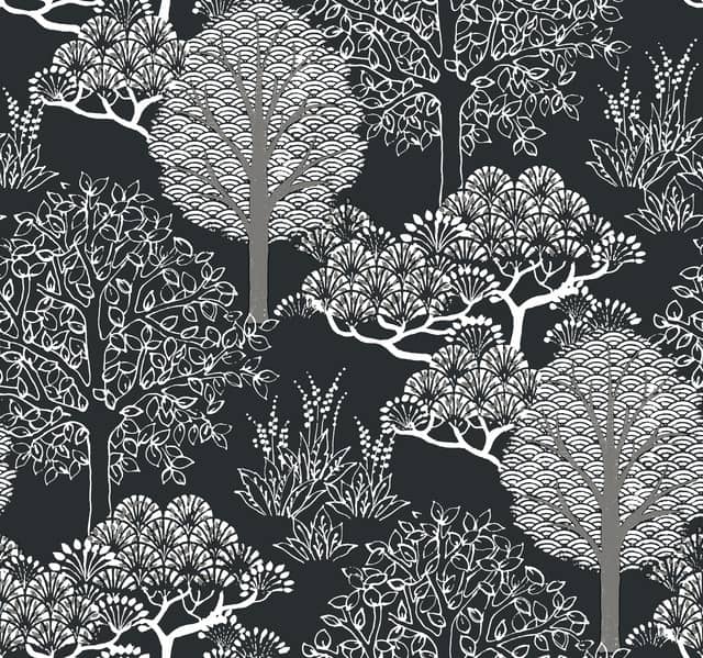 wzór: Tapeta Black & White Library Recource Drzewa Azjatyckie Kimono Metaliczna BW3852