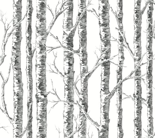 Modny wzór brzóz z najnowszej kolekcji Black & White Recource Library światowej sławy, amerykańskiego producenta tapet York Wallcoverings. Tapeta przedstawia malowane rzędy drzew brzozy o malowniczym wykończeniu. Jest to nowoczesny wzór z akcentem w stylu botanicznym, który idealnie sprawdzi się w salonie, kuchni lub sypialni, jako ściana dekoracyjna pasując do każdej przestrzeni.