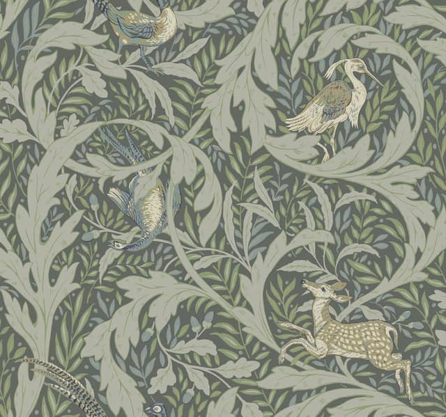 Tapeta dla odważnych klientów wzór inspirowany archiwalnymi motywami tapet. Liście akantu oplatają zwierzęta, piękna i ponadczasowa kompozycja. Tapeta ścienna produkcji amerykańskiej marki York. Ronald Redding Arts & Craft to bogactwo wzorów synonim klasy oraz ponadczasowej elegancji. Ciekawy wzór w klasycznym charakterze symetria i odpowiednie proporcje, dzięki temu tapeta podkreśli charakter wnętrza a jednocześnie będzie ponadczasowa. Aranżacja wnętrza z użyciem tej tapety będzie stylowa i elegancka.