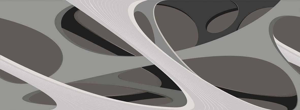 Mural dekoracyjny z kolekcji "Hommage" Zahy Hadid. Mural winylowy odporny na uszkodzenia mechaniczne i zabrudzenia, zmywalny. Składa się z 6 paneli tworzących jeden duży obraz.
