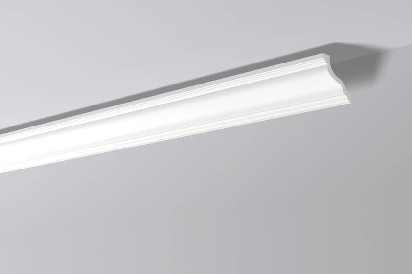 Pobierz teksturęListwa przysufitowa wykonana z wysokiej gęstości polistyrenu. Powłoka gładka z farbą podkładową, przygotowana do malowania. Listwa jest lekka, twarda, odporna na wodę i wilgoć, odporna na zmywanie, niepalna oraz nietoksyczna. Listwa w klasycznym stylu.