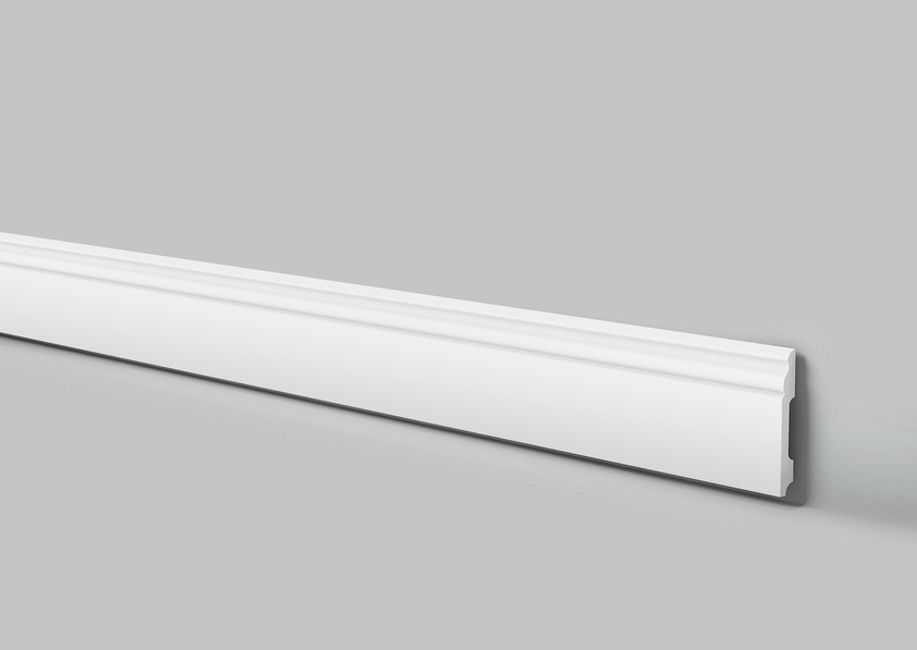 Pobierz teksturęListwa przypodłogowa wykonana z wysokiej gęstości polistyrenu. Powłoka gładka z farbą podkładową, przygotowana do malowania. Listwa jest lekka, twarda, odporna na wodę i wilgoć, odporna na zmywanie, niepalna oraz nietoksyczna. Listwa w nowoczesnym stylu.