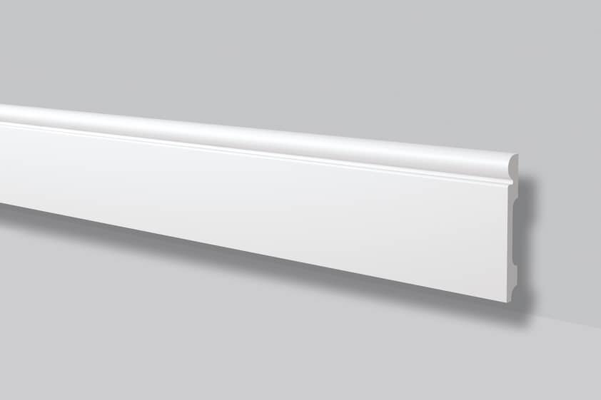 Pobierz teksturęListwa przypodłogowa wykonana z wysokiej gęstości polistyrenu. Powłoka gładka z farbą podkładową, przygotowana do malowania. Listwa jest lekka, twarda, odporna na wodę i wilgoć, odporna na zmywanie, niepalna oraz nietoksyczna. Listwa w nowoczesnym stylu.