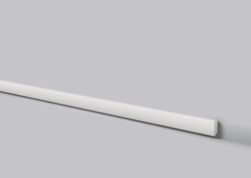 Listwa przypodłogowa wykonana z wysokiej gęstości polistyrenu. Powłoka gładka z farbą podkładową, przygotowana do malowania. Listwa jest lekka, twarda, odporna na wodę i wilgoć, odporna na zmywanie, niepalna oraz nietoksyczna. Listwa w nowoczesnym stylu.