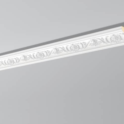 Pobierz teksturęListwa wykonana z wysokiej gęstości poliuretanu. Powierzchnia listwy gładka, przygotowana do malowania. Produkt jest lekki, odporny na wodę i wilgoć. Listwa w stylu klasycznym, bogato zdobiona.