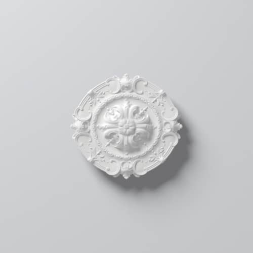 Pobierz teksturęRozeta ARSTYL jest wykonana z twardego poliuretanu o wysokiej gęstości. Powłoka jest gładka pomalowana białą farbą podkładową, przygotowana do malowania. Rozeta jest lekka, wytrzymała, odporna na wodę i wilgoć. Można malować wszystkimi farbami emulsyjnymi, akrylowymi, metalicznymi na bazie wody.