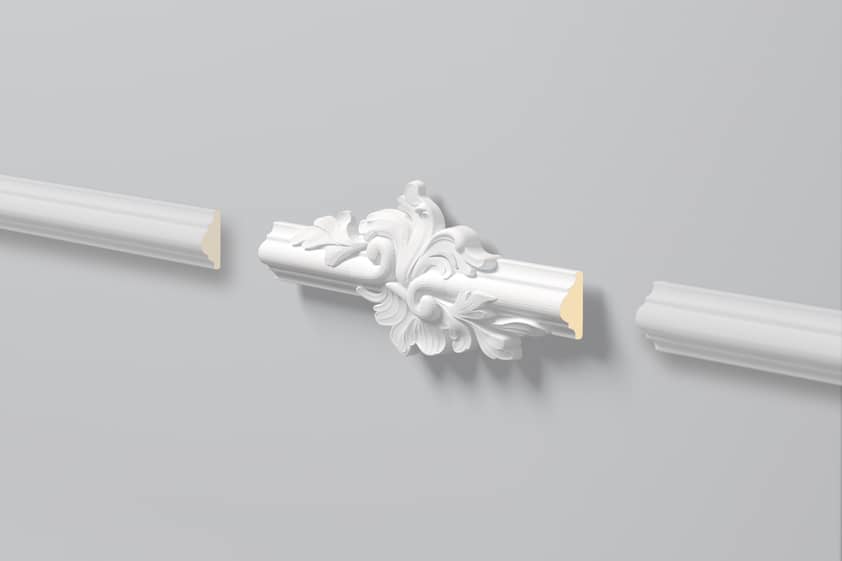 Narożnik wykonany z wysokiej gęstości Poliuretanu. Powłoka gładka przygotowana do malowania. Jest lekki, twardy, odporny na wodę i wilgoć, odporny na zmywanie, niepalny oraz nietoksyczny.  Narożnik w klasycznym stylu, bogato zdobiony.