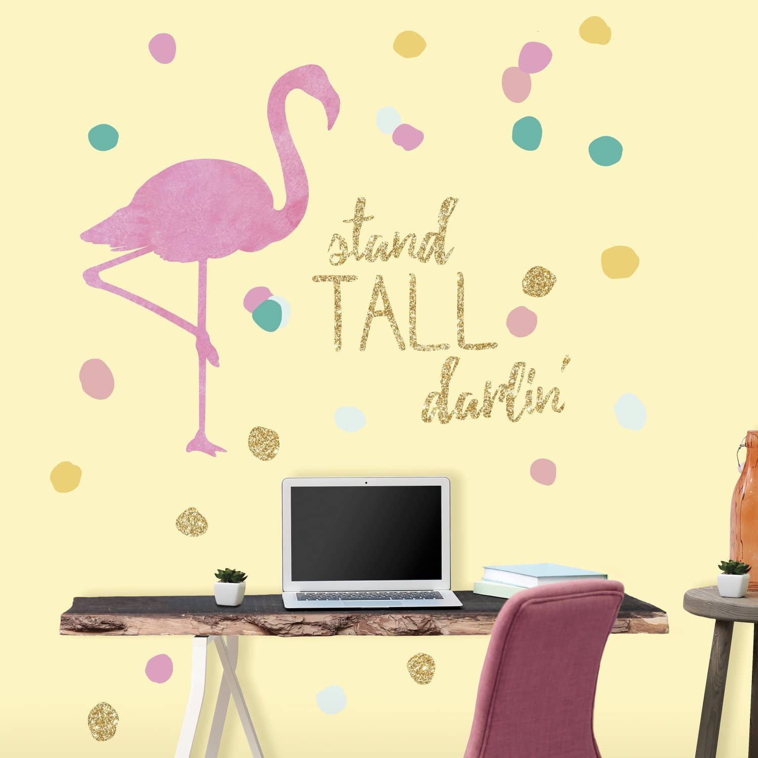 Pobierz teksturęNaklejka samoprzylepna wielokrotnego użytku, przedstawiająca złote i różowe flamingi. Dzięki zastosowaniu specjalnego kleju, odklejamy i przyklejamy ją wielokrotnie w innych miejscach, nie pozotawiając śladów na ścianie nawet po długim czasie. Nadaje się również do dekoracji mebli. Naklejka składa się z 1 arkusza o wymiarze 43,8 cm x 92,7 cm, komplet składa się z 28 elementów.