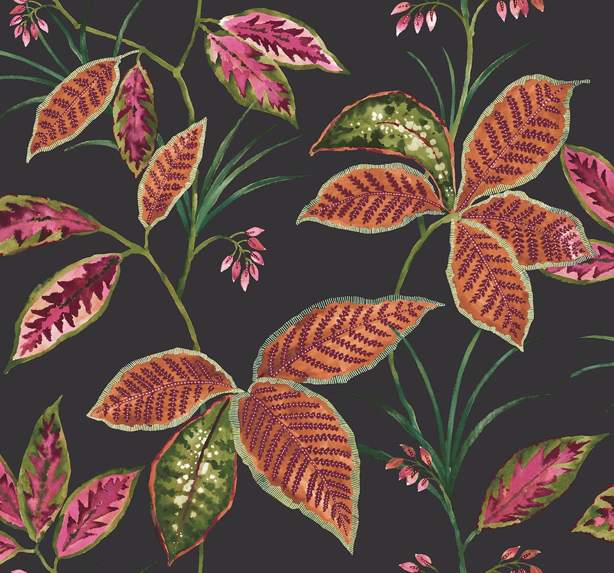 wzór: Tapeta liście kwiaty czarna Maui Maui Wallquest TP80800