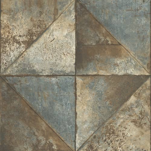 Tapeta IR70507 z kolekcji amerykańskiej firmy Wallquest Modern Foundation idealnie wpisuje się w orginalny charakter całej kolekcji. Duże, jakby postarzone metalowe płyty układają się w geometryczny wzór trójkątów.  Szaro - niebieska  kolorystyka, odrobina zimnego brązu i przetarcia  sprawiają, że okładzina daje wrażenie surowej i nieco industrialnej.  Okładzina idealna dla lubiących chłodny minimalizm, z pewnością nada każdemu wnętrzu niepowtarzalnego charakteru.