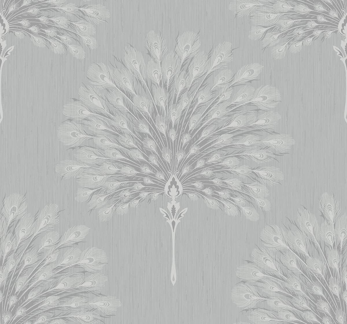 Tapeta KELVINGTON CR34007 z motywem pawich piór w formie wachlarza, ozdobionego kryształkami Swarowskiego, które nadają tapecie wyjątkowy ekskluzywny wygląd. Przepięknie mieniąca się w świetle.