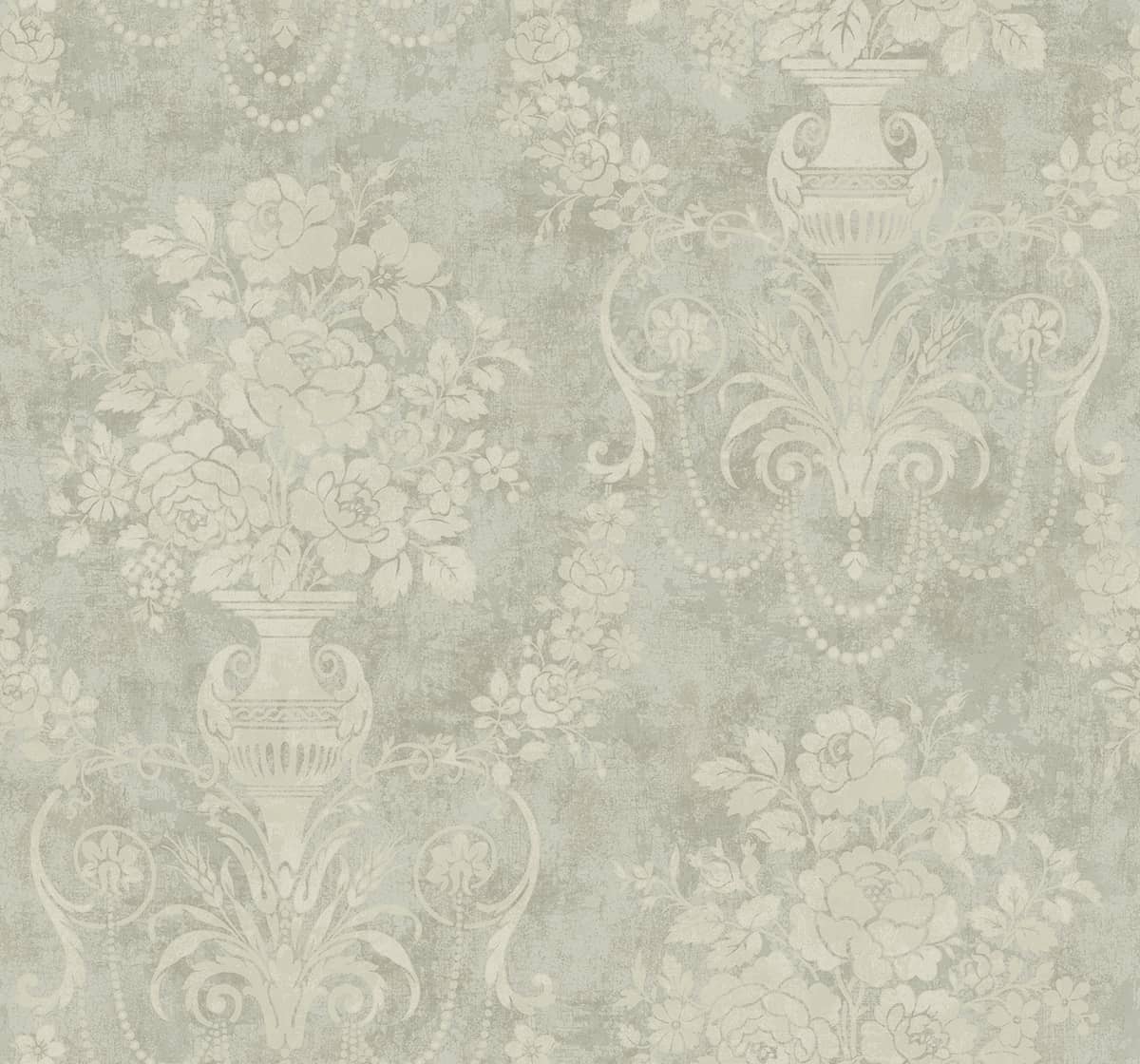Tapeta KENTON CR30508 w klasycznym stylu ozdobiona bukietami kwiatów i girlandamiprzepięknie mieniąca się w świetle. Posiada wyczuwalny w dotyku wzór, który został naniesiony na przetarte tło.