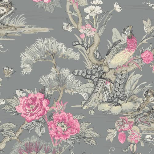 nazwa: TAPETA WALLQUEST SUMI AF41701 KWIATY PTAKI RÓŻOWY SREBRNY