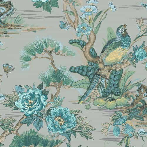 nazwa: TAPETA WALLQUEST SUMI AF41704 KWIATY PTAKI ZIELONY SREBRNY