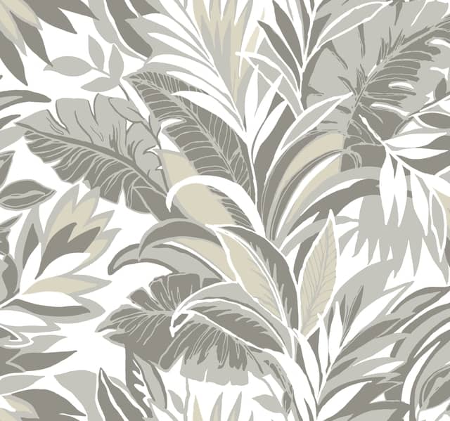 Wzór tapety z motywem liści tropikalnych nawiązuje do współczesnych trendów nowoczesnego designu. Tapeta pochodzi z kolekcji Conservatory firmy York Wallcoverings. Tworzy spokojny i relaksujący nastrój, świetnie sprawdzi się w każdym wnętrzu.