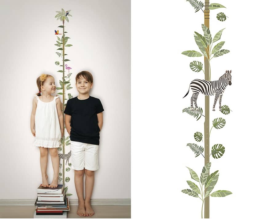 Świetnym pomysłem na ozdobienie pokoju dziecka a zarazem praktycznym wykorzystaniem przestrzeni są miarki wzrostu. Kolorowe, świetnie zaprojektowane, dzieciaki je uwielbiają. W kolekcji jest kilka wzorów, możliwości do wyboru. ędzie to swietny pomysł na uzupełnienie tapet z podobnym motywem.