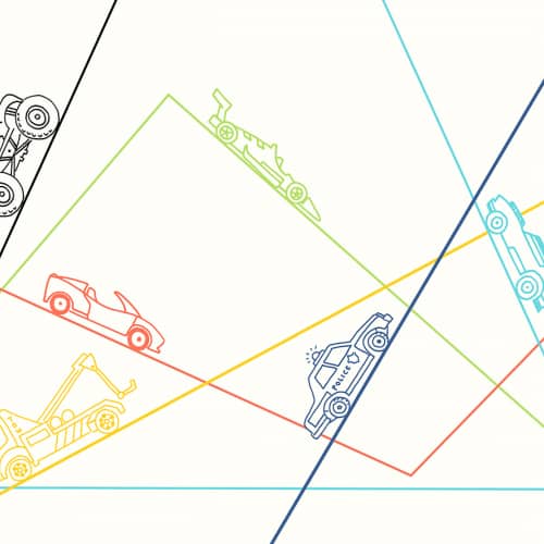 Mural do pokoju dziecięcego. Motyw  z kolorowymi autami sprawdzi sie w pokoju zarówno kilkulatka jak i starszego dziecka. Delikatny motyw na jasnym tle idealnie wpasuje sie w aranżację pokoju chłopca.