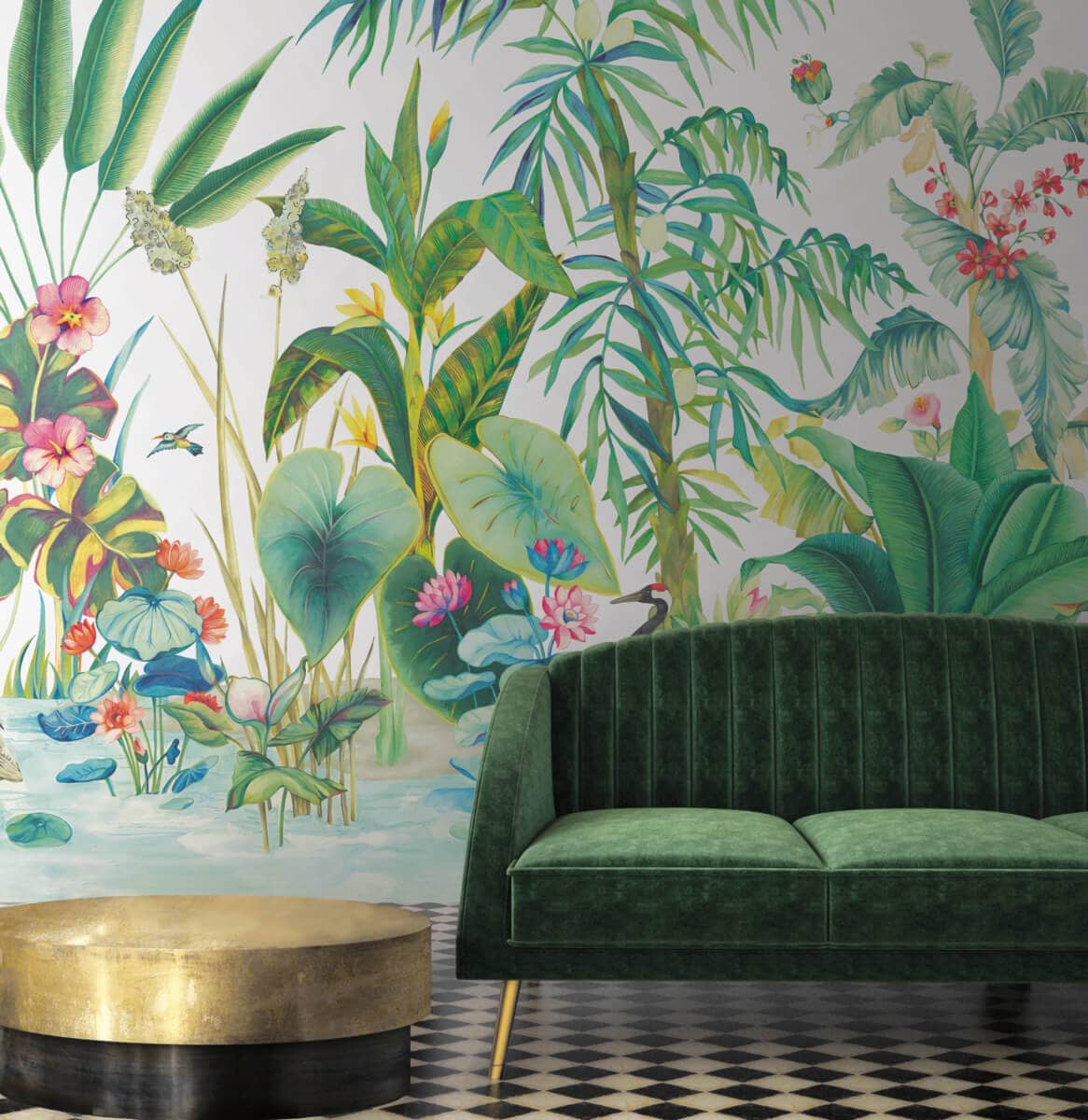 Nietuzinkowy mural autorstwa amerykańskiego producenta York Wallcoverings z kolekcji Murals Resource Library Volume I inspirowany egzotyczną florą i fauną. Doda każdemu wnętrzu świeżości oraz szczyptę egzotyki. Doskonała propozycja zarówno do salonu, jak i sypialni.