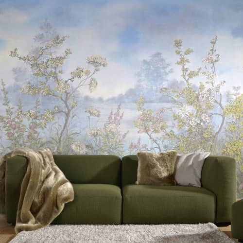 Realistyczny i pełny szczegółów wzór przedstawia cudowny krajobraz nad brzegiem jeziora, usiany krzewami i kwiatami łąkowymi w pełnym rozkwicie. Mural pochodzi z kolekcji Domotex autorstwa niemieckiej firmy Marburg. Aby stworzyć motyw pełen różnorodności, można go połączyć ze wzorem 30971. Mural doda niesamowitego klimatu do każdego wnętrza.
