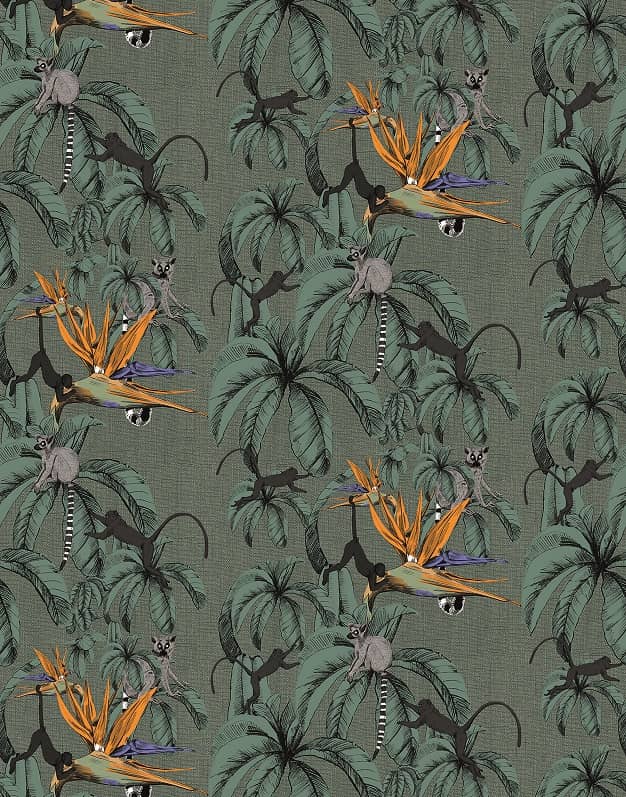 wzór: Mural Marburg Smart Art 46810 palmy lemury zielony pomarańczowy