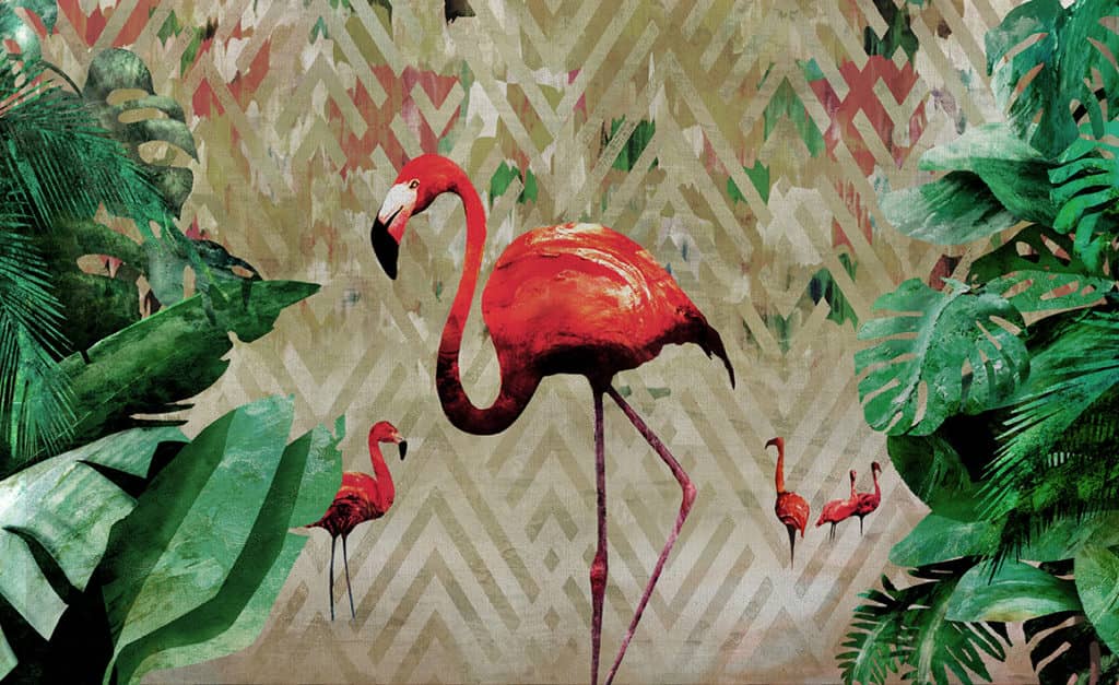 nazwa: MURAL SKINWALL LIŚCIE GEOMETRIA FLAMINGO BAY