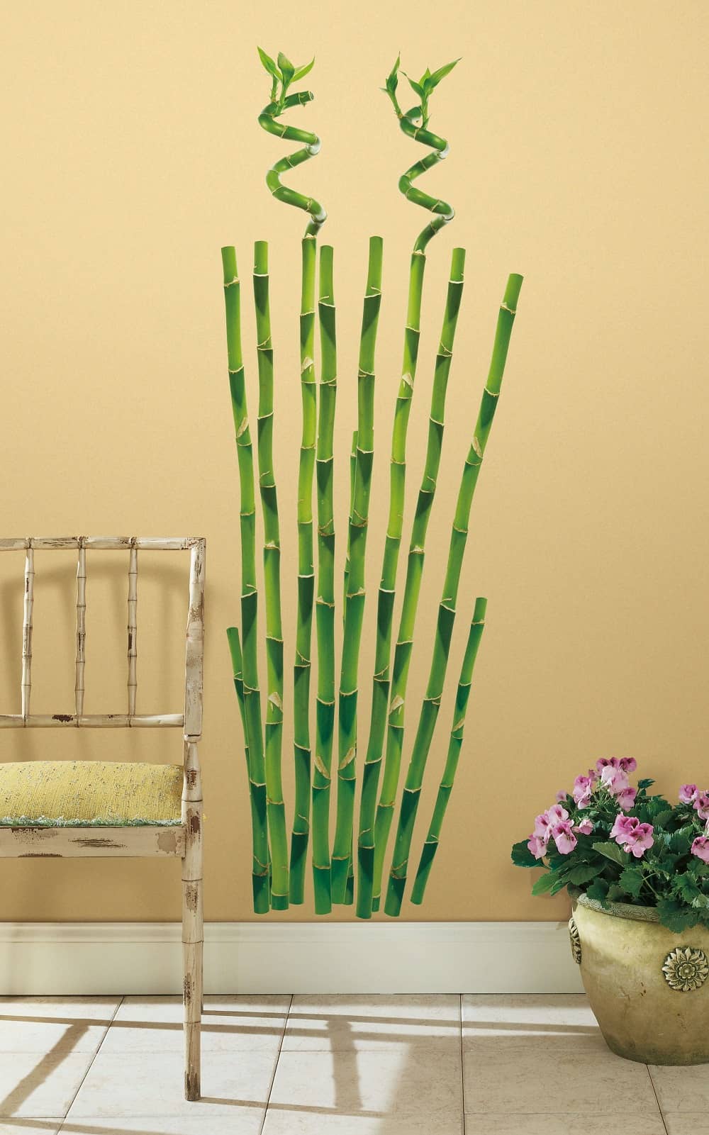 Kompozycja naklejek dekoracyjnych RoomMates autorstwa amerykańskiej firmy York Wallcoverings przedstawia wzór bambusa. Wyróżnia się łatwością instalacji i demontażu bez śladów po kleju i uszkodzeń powierzchni, niezobowiązywaniem się oraz wszechstronnością w użyciu. Dzięki nowoczesnej technologii Peel & Stick może być wykorzystywana wielokrotnie. Stanowi ciekawy sposób na ożywienie lub odmianę każdej przestrzeni lub powierzchni, bądź to ściana, mebel czy sprzęt elektroniczny.