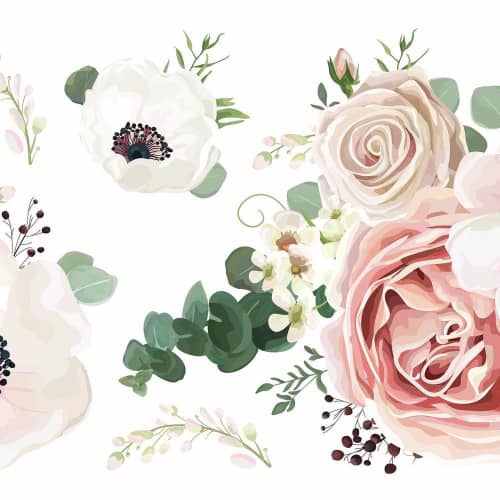 Kompozycja naklejek dekoracyjnych RoomMates autorstwa amerykańskiej firmy York Wallcoverings przedstawia wzór kwiatów. Wyróżnia się łatwością instalacji i demontażu bez śladów po kleju i uszkodzeń powierzchni, niezobowiązywaniem się oraz wszechstronnością w użyciu. Dzięki nowoczesnej technologii Peel & Stick może być wykorzystywana wielokrotnie. Stanowi ciekawy sposób na ożywienie lub odmianę każdej przestrzeni lub powierzchni, bądź to ściana, mebel czy sprzęt elektroniczny.