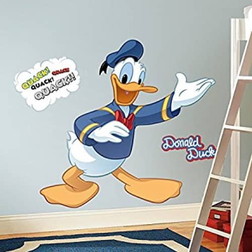 Pobierz teksturęNaklejka KACZOR DONALD - DONALD DUCK amerykańskiej firmy York z kolekcji Disney, zmywalna. Dzięki zastosowaniu specjalnego kleju, odklejamy i przyklejamy ją wielokrotnie w innych miejscach, nie pozotawiając śladów na ścianie nawet po długim czasie. Nadaje się również do dekoracji mebli. Rozmiar całkowity naklejki 93,9 cm x 99,7 cm. W zestawie 9 elementów.