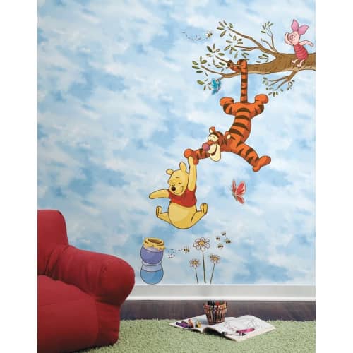 Naklejka KUBUŚ PUCHATEK I MIODEK - WINNIE POOH SWING FOR HONEY amerykańskiej firmy York z kolekcji Disney, zmywalna. Dzięki zastosowaniu specjalnego kleju, odklejamy i przyklejamy ją wielokrotnie w innych miejscach, nie pozotawiając śladów na ścianie nawet po długim czasie. Nadaje się również do dekoracji mebli. Rozmiar całkowity naklejki 104,7 cm x 132 cm, komplet składa się z 39 elementów.