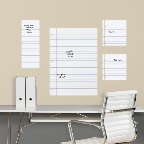 Pobierz teksturęNaklejka foliowa samoprzylepna wielokrotnego użytku przedstwiająca kartki z zeszytu. Dzięki zastosowaniu specjalnego kleju, odklejamy i przyklejamy ją wielokrotnie w innych miejscach, nie pozotawiając śladów na ścianie nawet po długim czasie. Nadaje się również do dekoracji mebli. Naklejka składa się z 1 arkusza o wymiarze 45,7 cm x 101,6 cm, komplet składa się z 4 elementów.