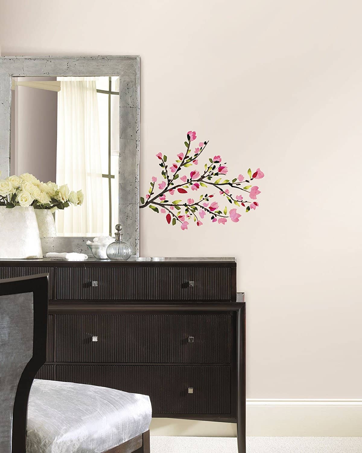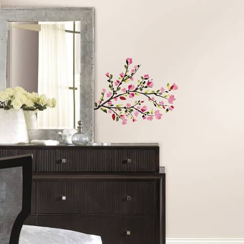 Naklejka foliowa samoprzylepna wielokrotnego użytku, przedstawiająca gałązkę wiśniową. Dzięki zastosowaniu specjalnego kleju, odklejamy i przyklejamy ją wielokrotnie w innych miejscach, nie pozotawiając śladów na ścianie nawet po długim czasie. Nadaje się również do dekoracji mebli. Naklejka składa się z 4 arkuszy o wymiarze 25,4 cm x 45,7 cm, komplet składa się z 36 elementów.