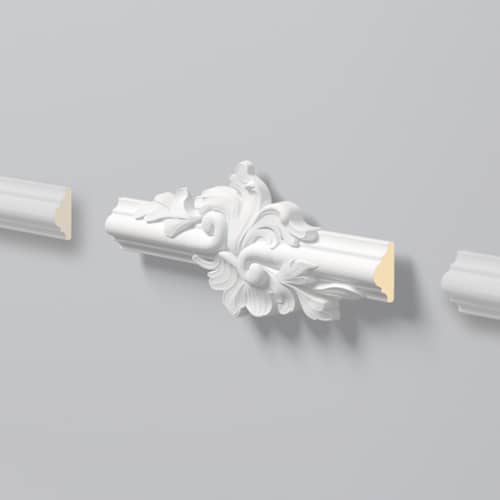 Narożnik wykonany z wysokiej gęstości Poliuretanu. Powłoka gładka przygotowana do malowania. Jest lekki, twardy, odporny na wodę i wilgoć, odporny na zmywanie, niepalny oraz nietoksyczny.  Narożnik w klasycznym stylu, bogato zdobiony.