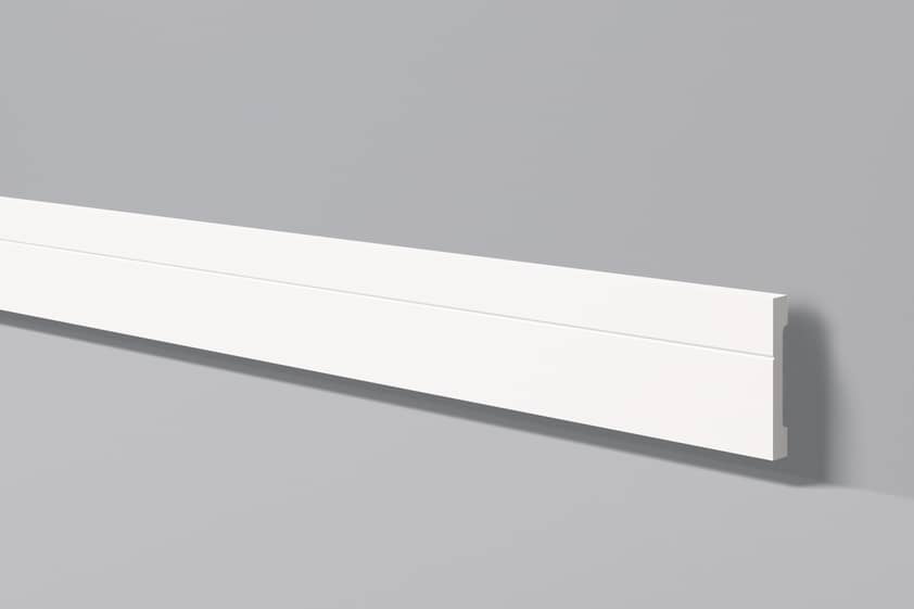 Pobierz teksturęListwa przypodłogowa wykonana z wysokiej gęstości polistyrenu. Powłoka gładka z farbą podkładową, przygotowana do malowania. Listwa jest lekka, twarda, odporna na wodę i wilgoć, odporna na zmywanie, niepalna oraz nietoksyczna. Listwa w nowoczesnym stylu.