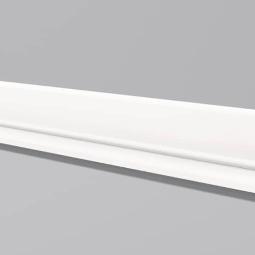 Listwa przypodłogowa wykonana z wysokiej gęstości polistyrenu. Powłoka gładka z farbą podkładową, przygotowana do malowania. Listwa jest lekka, twarda, odporna na wodę i wilgoć, odporna na zmywanie, niepalna oraz nietoksyczna. Listwa w nowoczesnym stylu.